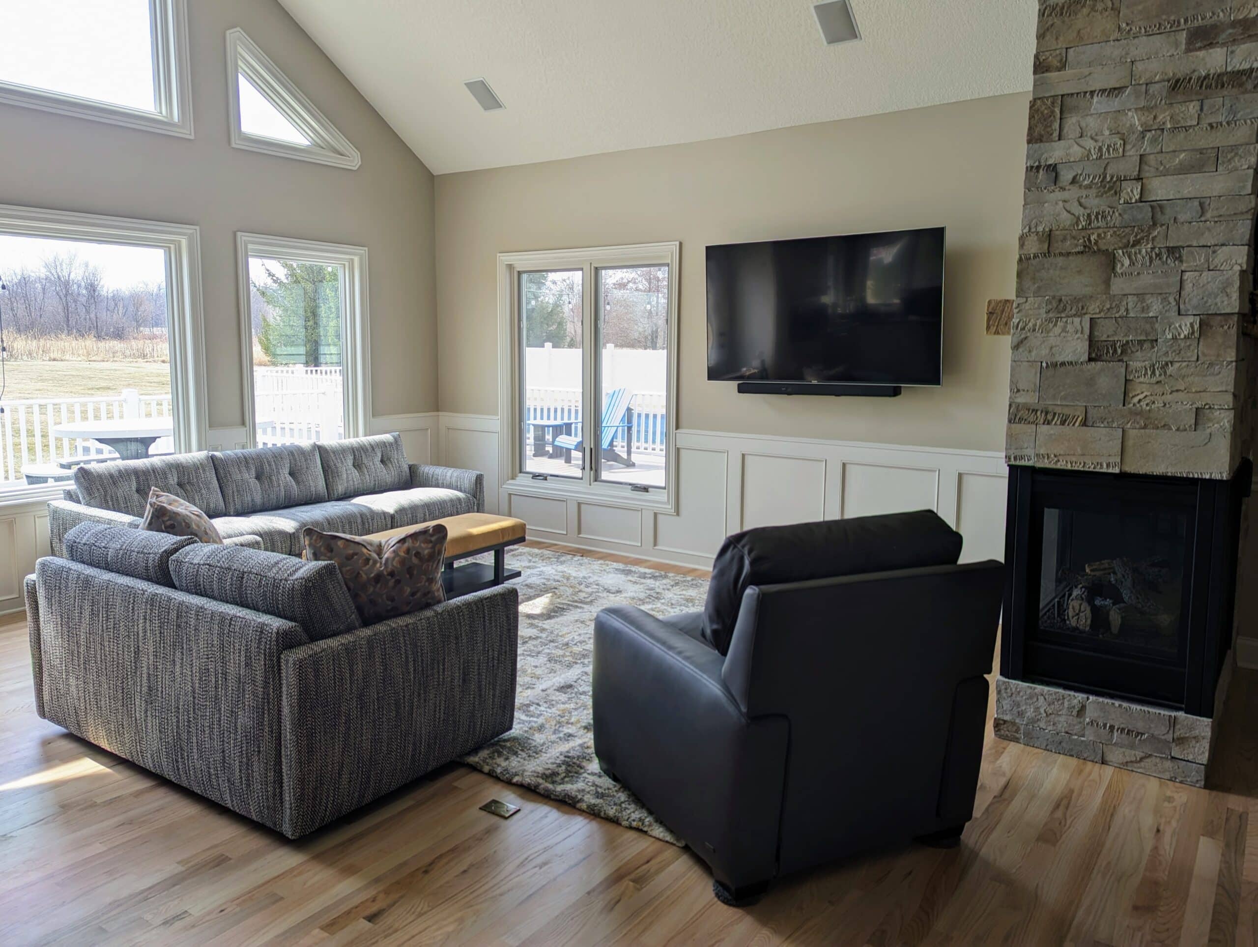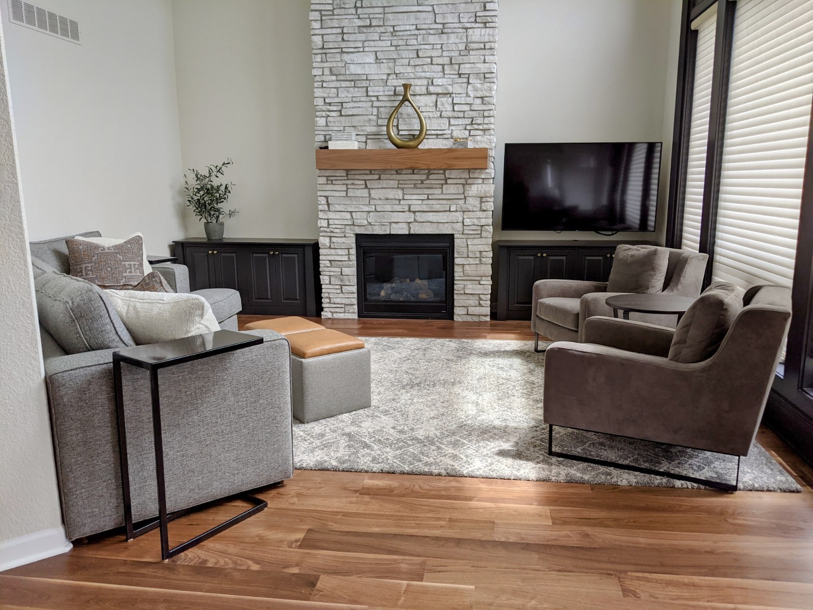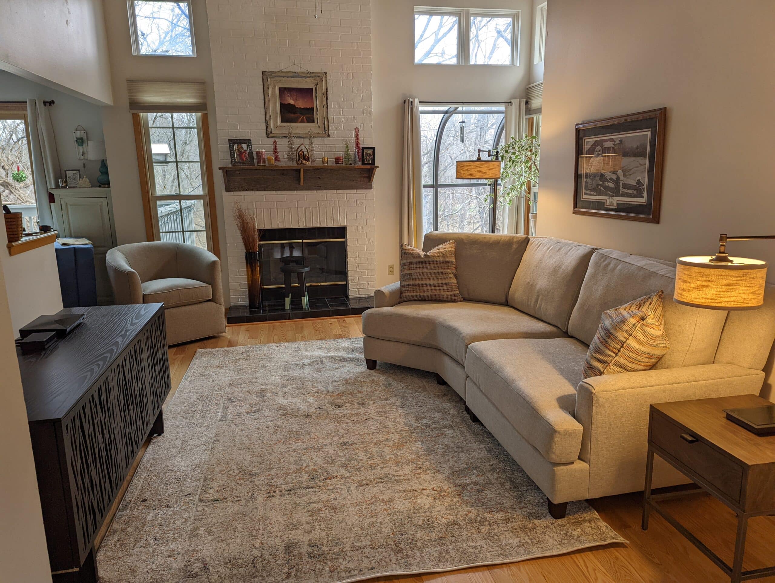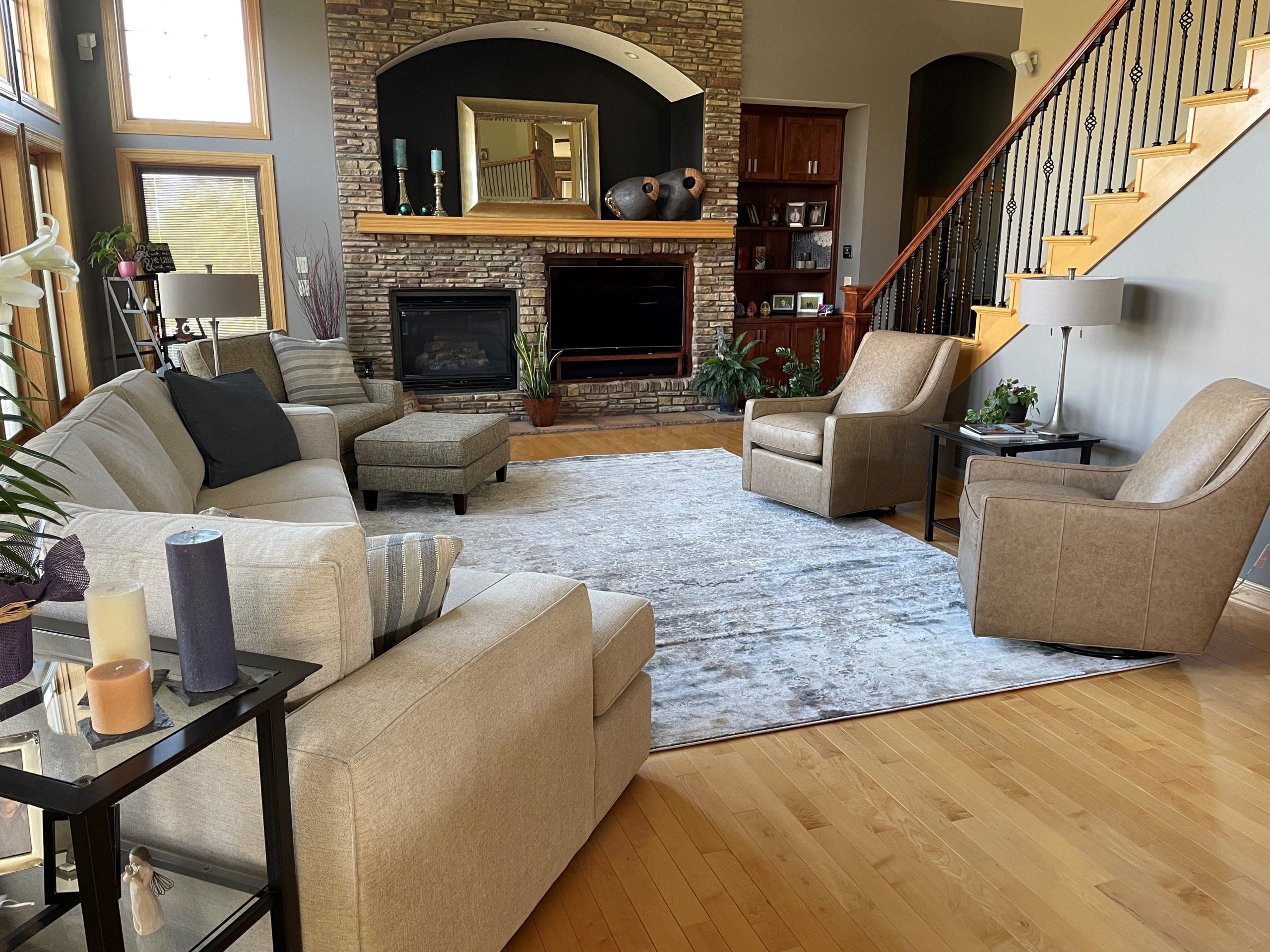 Within a couple months of completing their main floor living room, repeat clients Tracey & Greg decided they wanted Jessica’s help with their lower level family room project too. So we were on to another level!